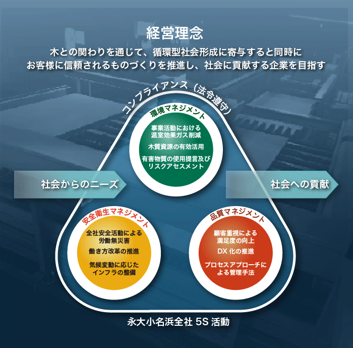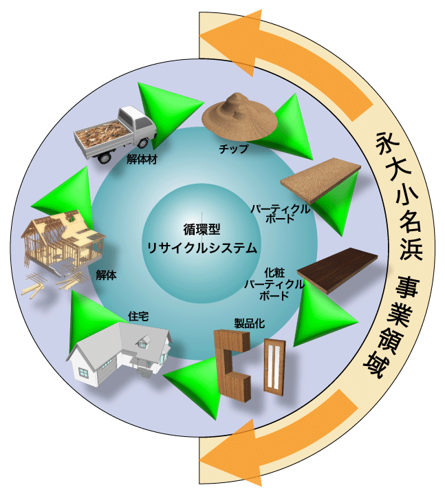 私たち永大小名浜は、事業活動を通じて、新たな木質資源の循環モデルの構築にチャレンジしています。